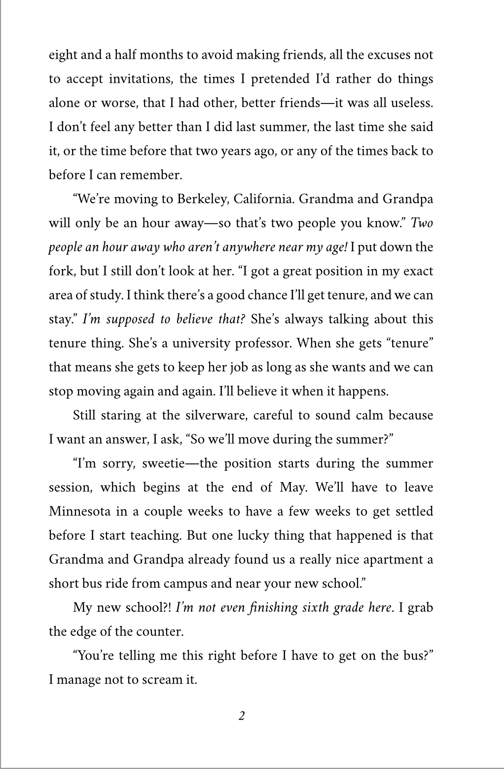 Sixth-grader Kerstin Bellini is so sick of moving around the USA that she avoids making friends so she won’t have to lose them. When her mom drops the bad news that their family of two is about to move again, Kerstin is devastated. But the next morning, when she wakes up in a forest she doesn’t recognize, things are definitely worse.